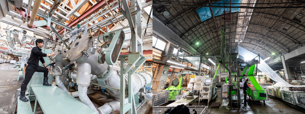 生地の染色と加工の工程が見学できるツアーを開催します。創業130年を超える老舗の染色工場内を間近でご覧いただけます!