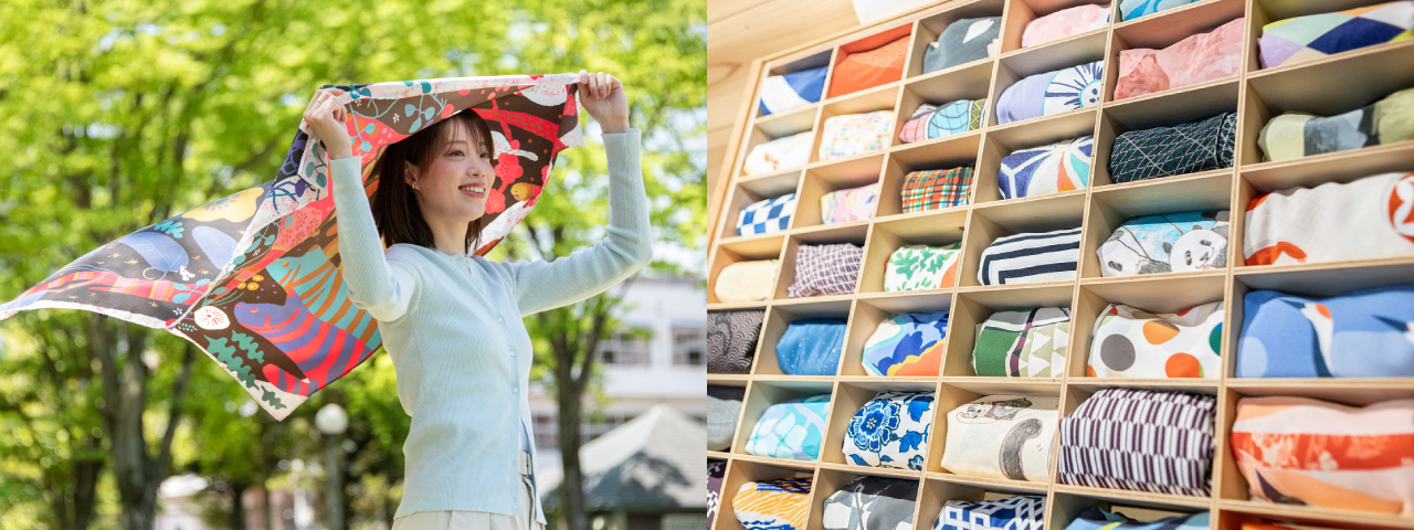 (工場見学にご参加いただいた方には、小さいサイズの非売品風呂敷をプレゼントします!)